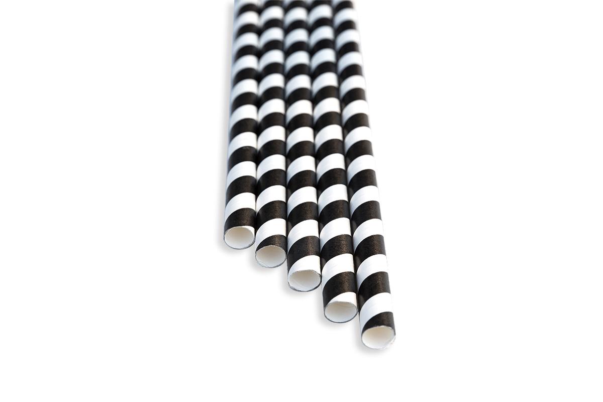 Brčka papírové 25 cm, černé pásky, bal. 100ks