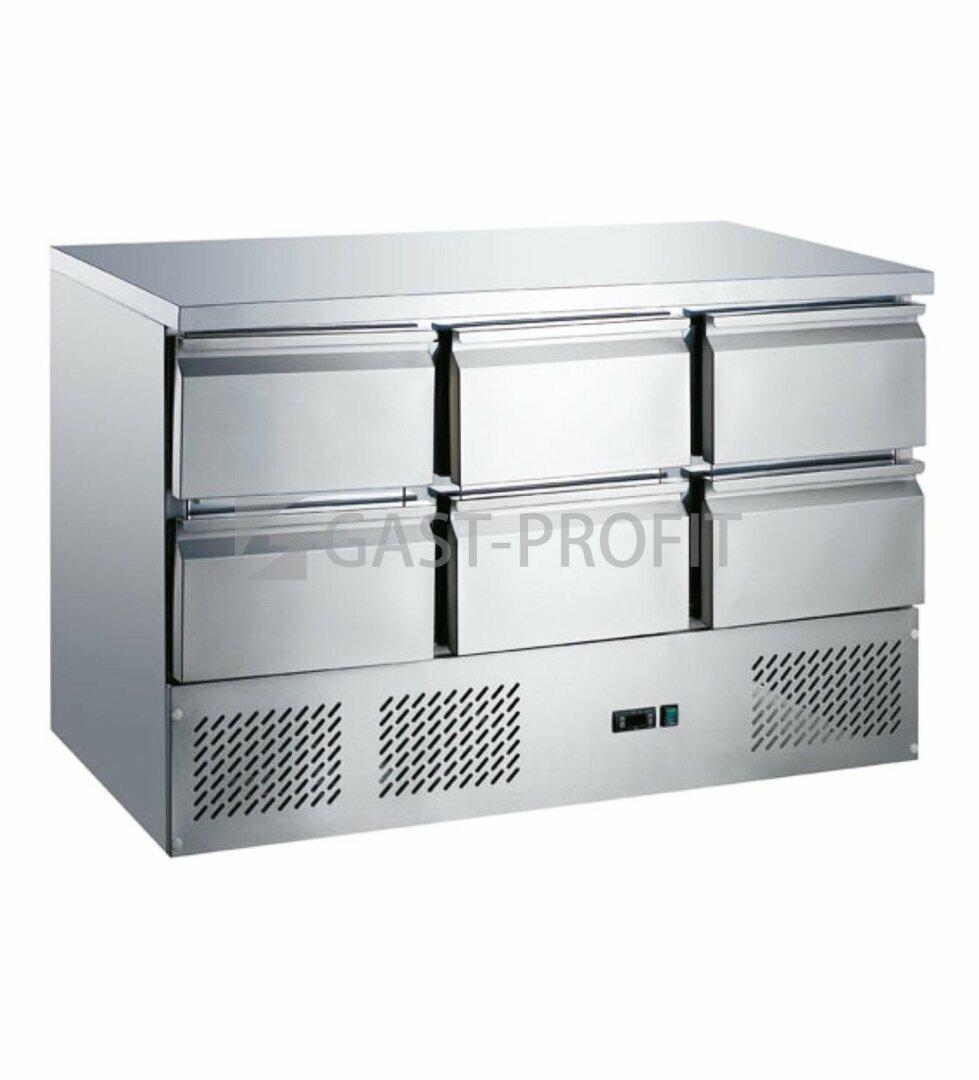 Celonerezové provedení se zásuvkami pro GN1/1 a vrchní nerezovou pracovní deskou bez zadního lemu. Rozsah teplot je 0 až 10°C.