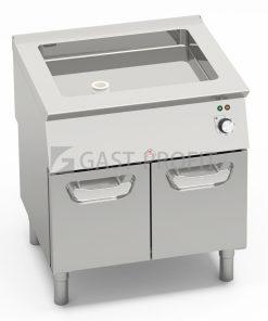 Výkonné elektrické topné těleso s regulací výkonu. Nádrž na vodu pod varnou zónou, se zaoblenými hranami a výpustným otvorem. Univerzální grilovací litinový rošt s postraními lemy. Pracovní deska z kvalitní nerez oceli AISI 304 tloušťka 2 mm (20/1),