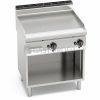 Topné těleso z oceli Incoloy s obzvlášť velkým průměrem je umístěno pod grilovací plotnu. Dvě zóny s nezávislým ovládáním a přesnou regulací teploty. Dvojvrstvá grilovací plotna složená z ocelového plátu a horní vrstvy z nerez oceli AISI 316 s leštěným povrchem, který umožňuje snadné čištění. Nízká úroveň odlesku zvyšuje komfort při práci. Zvýšené postranní lemy. Kompaktní provedení s otevřeným podstavcem.