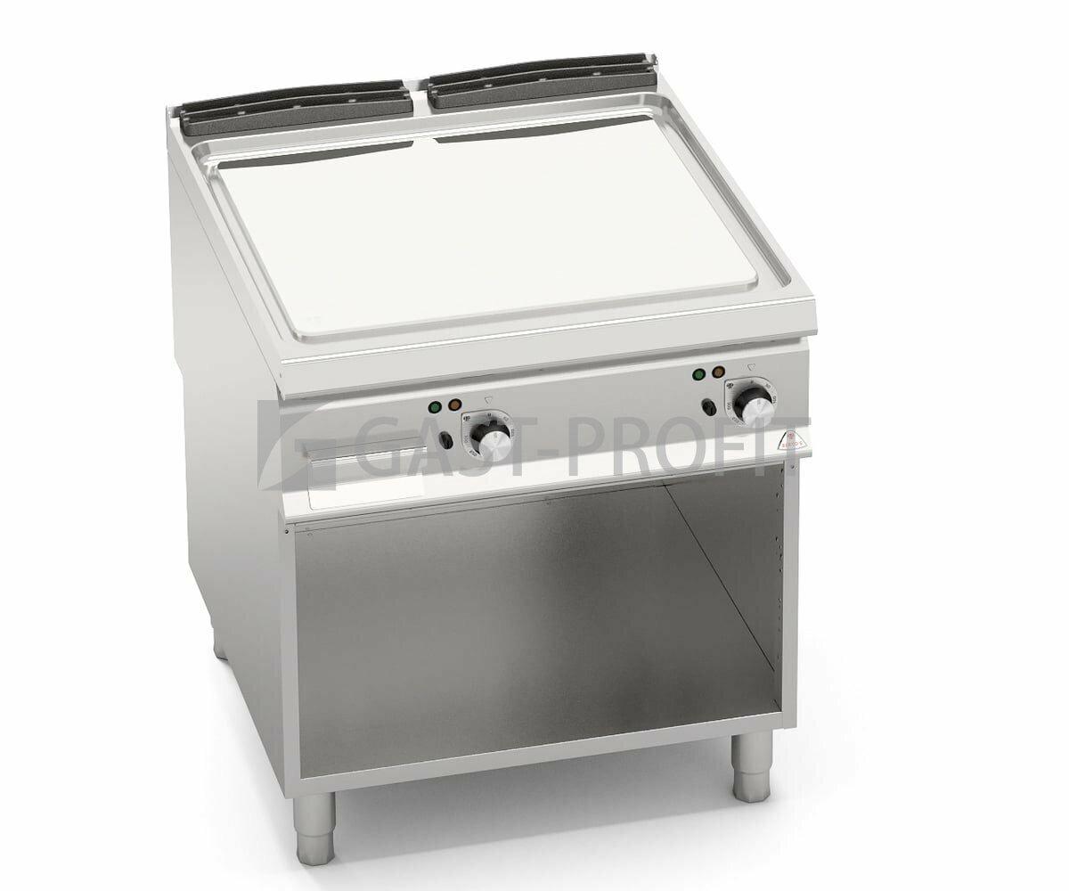 Kompletní sortiment plynových a elektrických ploten s různým provedením grilovací plochy. Lze na nich připravovat pokrmy tzv. „kontaktem“ a to nejcitlivějším způsobem. Jednotný systém distribuce tepla zaručuje rovnoměrné grilování po celé pracovní ploše, velké energetické úspory a zlepšení pracovního prostředí. Při grilování se přirozeně tvoří zbytkový olej, který je odváděn a shromažďován ve velké odpadní nádobce. Teflonová zátka, odolná vůči vysokým teplotám není součástí smažící plotny.