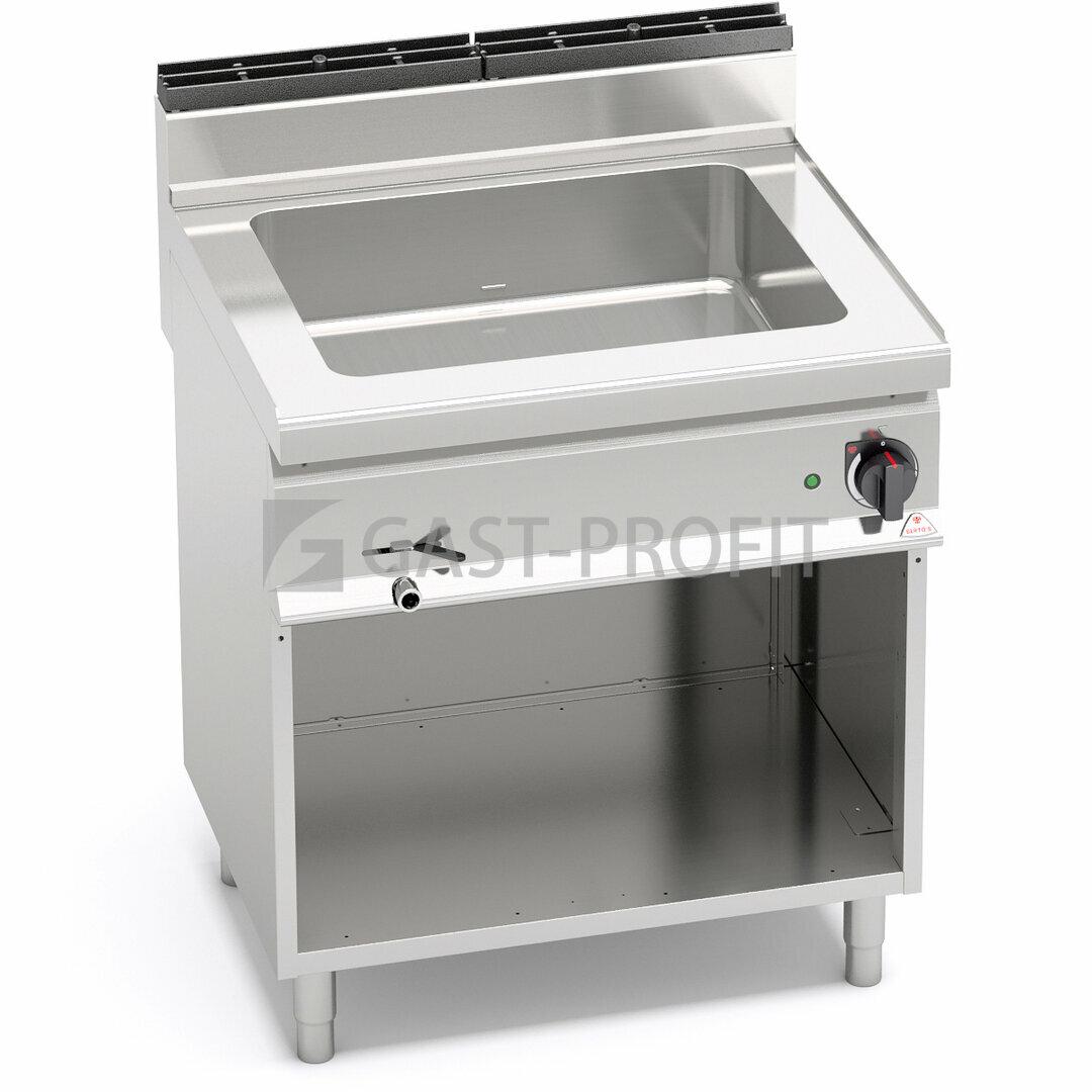 Nerezová vana pro GN s hloubkou 150 mm. Vypouštění kulovým kohoutem s tepelně odolným držadlem. Elektronická regulace výkonu. Kompaktní provedení s otevřeným podstavcem. Cena uvedena bez GN. Plynové a elektrické vodní lázně jsou ideálním řešením k še