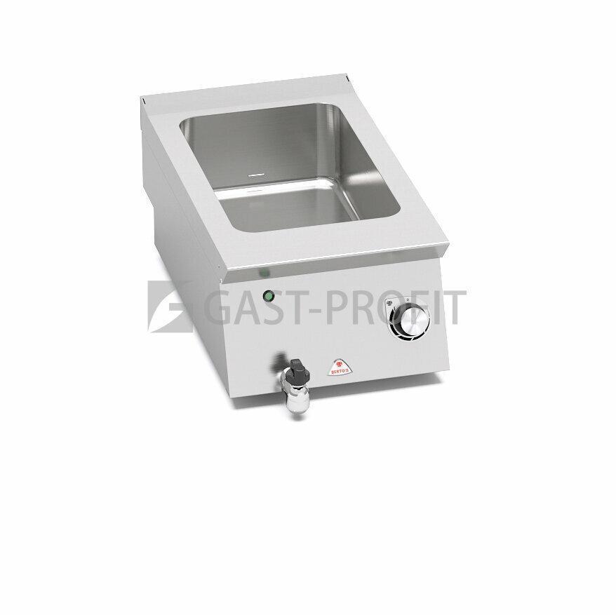 Topné těleso z Incoloy nerez oceli umístěné přímo ve vaně. Elektronická regulace výkonu. Pracovní deska z kvalitní nerez oceli AISI 304 tloušťka 2 mm (20/10), přední a boční opláštění z nerezové oceli AISI 304.