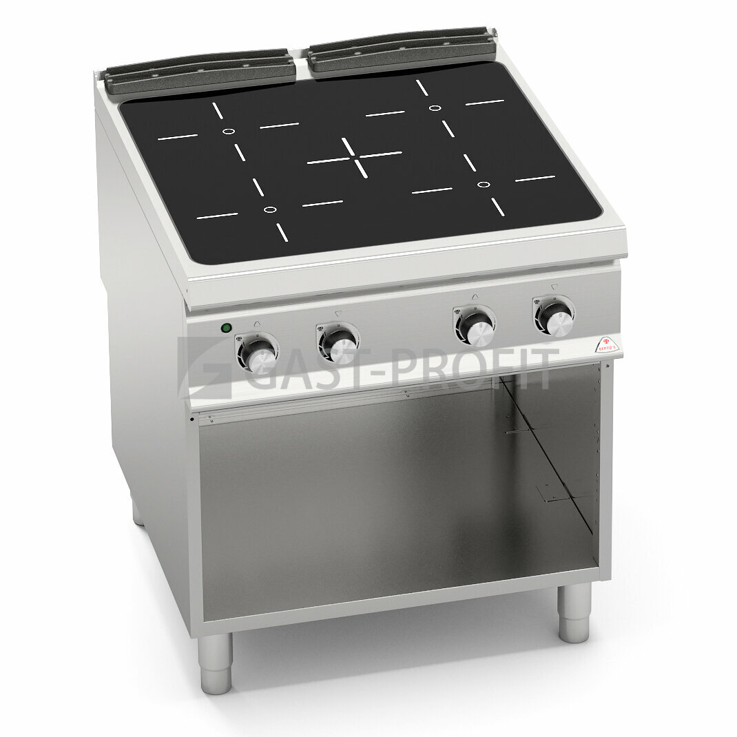 Keramická varná deska tloušťka 6 mm. Elektrická topná tělesa o Ø300 mm a výkonu 4kW dosahují při vaření v kruhových zónách vysokých teplot (do 500°C). Plochy zón jsou označeny speciálním serigrafem, dle kterého je určena správná poloha hrnce….