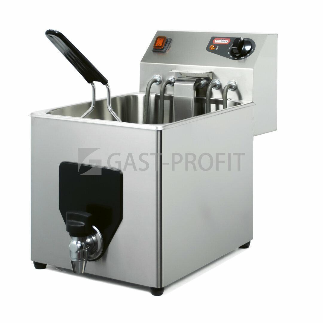 Celonerezové provedení s robustním pevným košem (220x250x104mm), robustní nerezová topnice 1x 5,1kW (400V/3/50Hz) dává dostatek výkonu pro rychlé nahřátí oleje a optimální tepelnou přípravu pokrmu, chladná zóna, výpustný kohout, přehledný panel s…