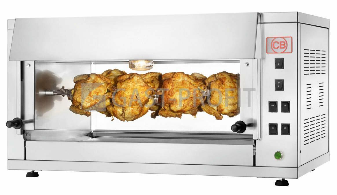 Elektrický gril na kuřata E-8 P. prosklený ze dvou stran vnitřní osvětlení Možno dodat náhradní jehly, koše, spony..
