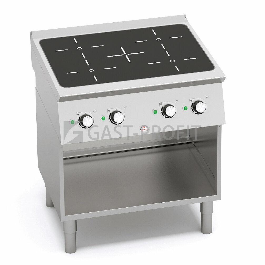 Keramická varná deska, tloušťka 6 mm (snadná každodenní údržba bez použití agrasivních prostředků). Maximální úspora energie, vytápění varné plochy je pouze při kontaktu hrnce s varnou plochou. Velikost topných zón je samo-regulovana podle průměru nádobí. Při odstranění nádobí z povrchu je automaticky přerušeno vytápění. Elektronická regulace teploty je prováděna potenciometrem. Kompaktní provedení s otevřeným podstavcem. Model TOUCH s dotykovým elektronickým ovládáním.