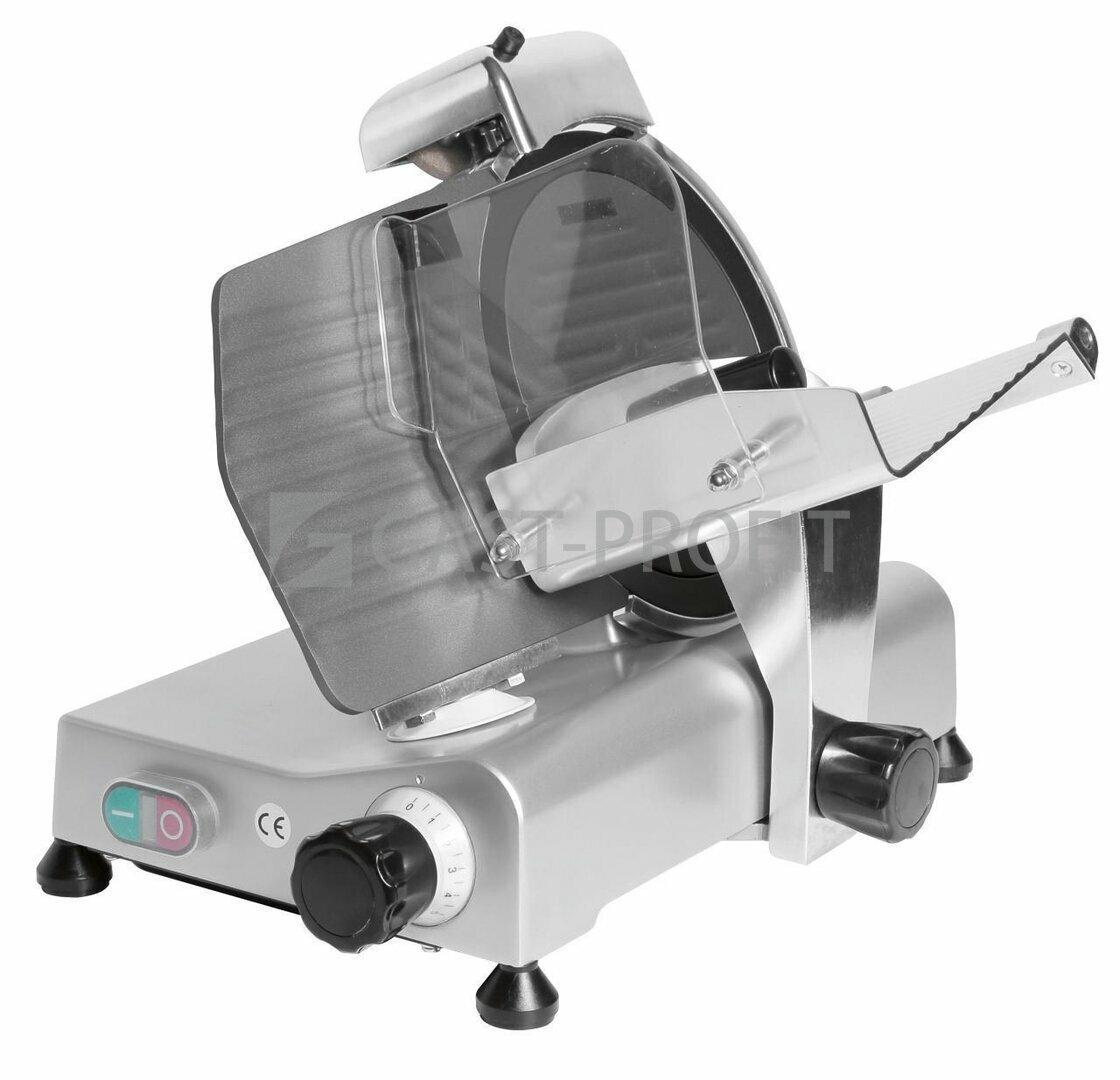 Pohon nože zajišťuje kvalitní motor s řemenovým převodem s napájením 230 V a příkonem 150 W. Šikmo uložený vozík vám bez větší námahy usnadní krájení suroviny. Vozík je navíc vybaven bezpečnostním krytem a přítlačkou pro bezpečné