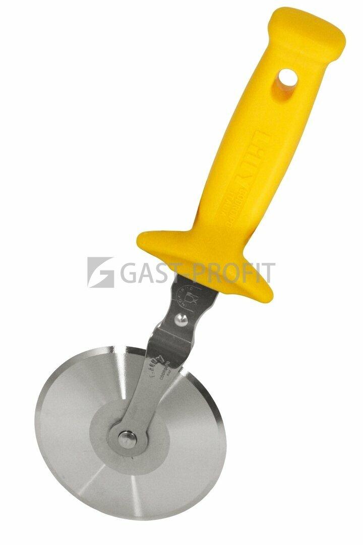 Nůž na krájení pizzy s oboustranným uchycením nože v masivním provedení s dlouhou životností. průměr nože: Ø9 cm nerez / plast žlutý