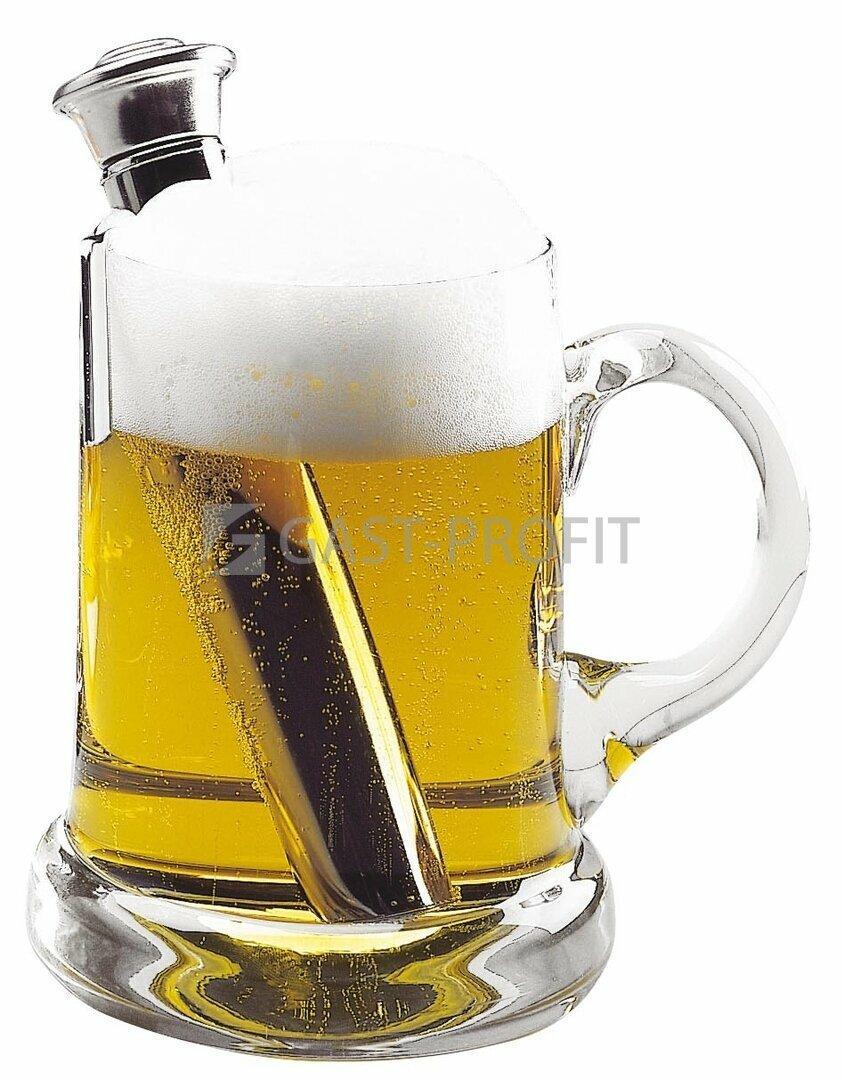 Ohřívátko piva se stojánkem v nerezovém provedení. Průměr 6 cm a výška 16,5.