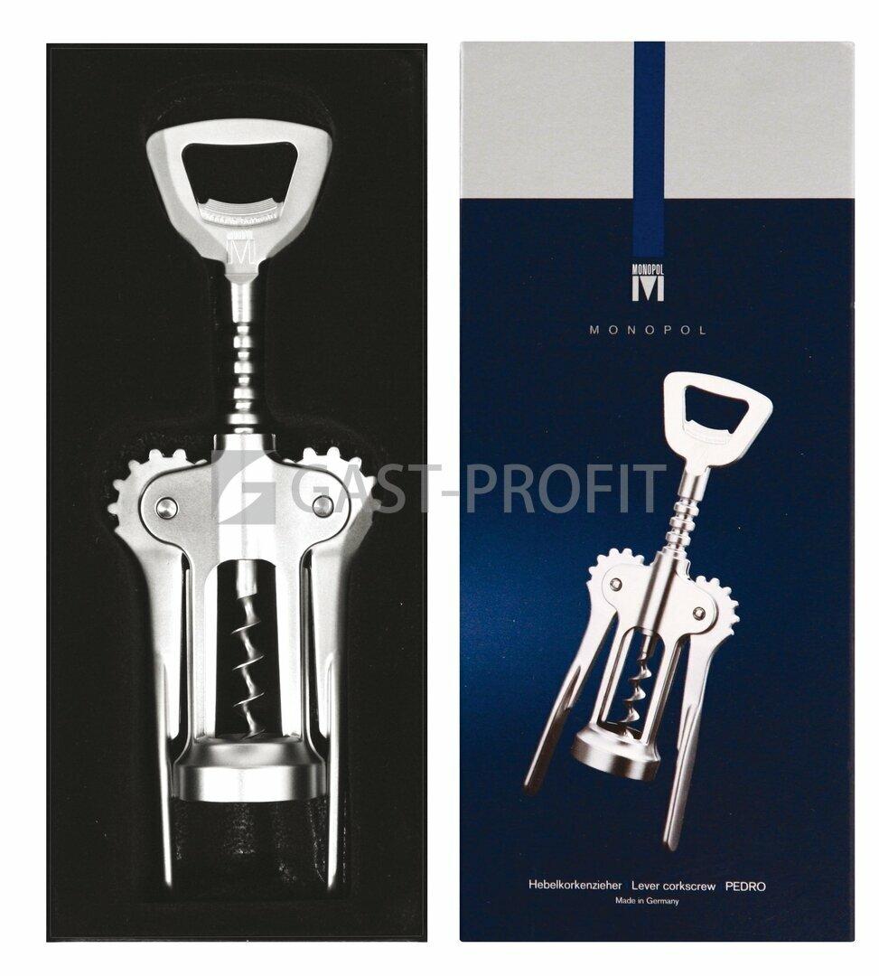 Masivní otvírák na víno z leštěného nerezu je dodáván v dárkovém balení.