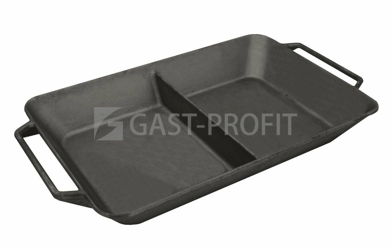 Dělený 1/2 litinový pekáč je vhodný pro všechny druhy sporáků (plynové, elektrické vč. sklokeramických a indukčních) a trub. Po umytí ošetřit olejem!
