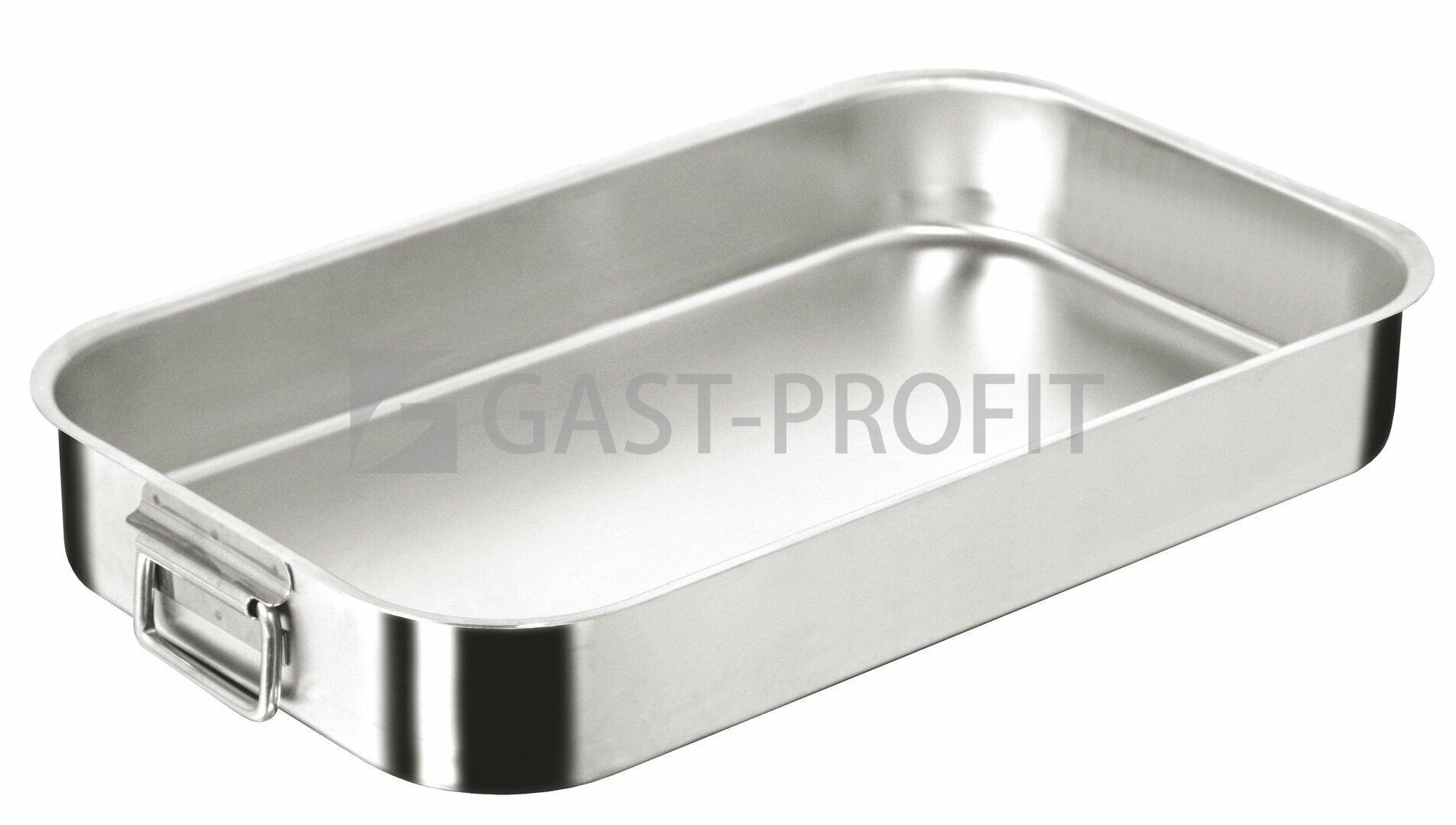Pekáč nízký Paderno z nerez oceli 18/10 o tloušťce 2 mm se sklopnými uchy. Příslušenství: poklice k pekáči PADERNO