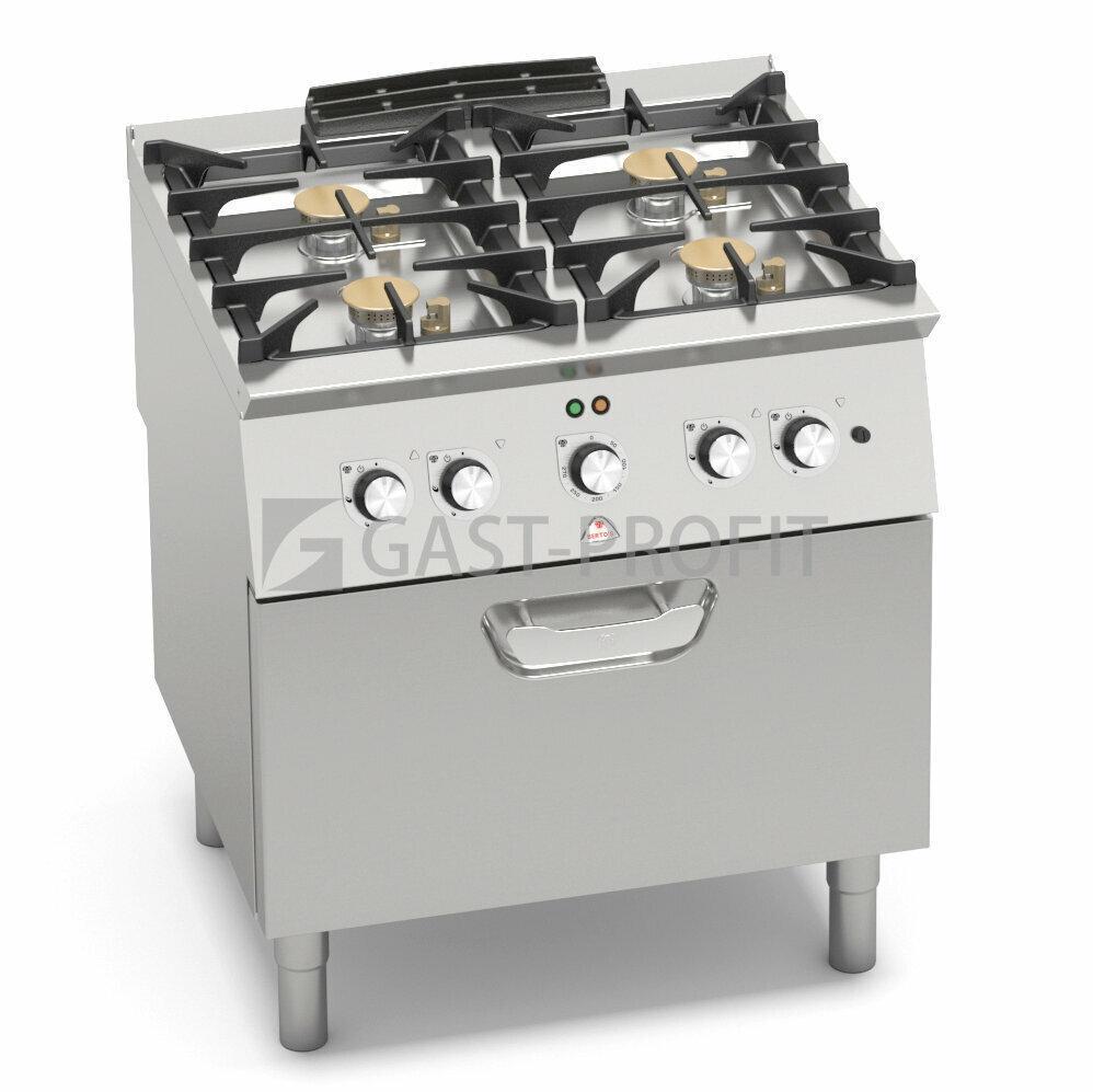 Nové výkonné sporáky linie HIGH POWER vyrobeny z odolné nerez oceli AISI 304. Profesionální poniklované litinové hořáky s vnitřním a vnějším hořením, snadno demontovatelné umístěny v prolisované nerezové vaně vybavené výpustí. Možnost napuštění vody kolem hořáků (snadné a rychlé čištění vypuštěním znečištěné vody). Hořáky s bezpečnostním termočlánkem, zapalovány věčným plamínkem. Kompaktní provedení s otevřeným podstavcem. Kompaktní provedení s výkonou elektrickou horkovzdušnou troubou GN 2/1. Pracovní plocha z nerez oceli AISI 304 tloušťka 2 mm (20/10), přední a boční panely z kvalitní nerezové oceli AISI 304. Litinové hořáky s mosazným víčkem, vybaveny pojistným termoventilem a ochranou pilotního hořáku. Úsporné, ale výkonné hořáky 5 kW jsou umístěny v prolisované hluboké vaně z nerezové oceli AISI 304.