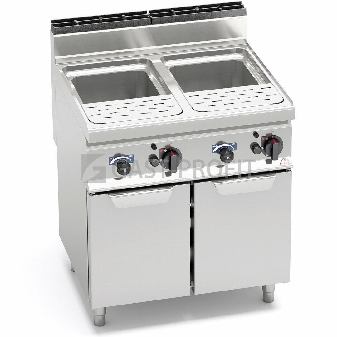 Výkonné plynové a elektrické vařiče těstovin s přesným nastavením výkonu. Plynové modely vybaveny pojistným termoventilem, zápalnýmplaménkem s elektrickým piezzo zapalováním. Elektrické vařiče s topným tělesem uvnitř lisované vany AISI 316, chráněny perforovaným roštem. Dodáváno s křídlovými dvířky, bez základní výbavy košů (sestava dle výběru).