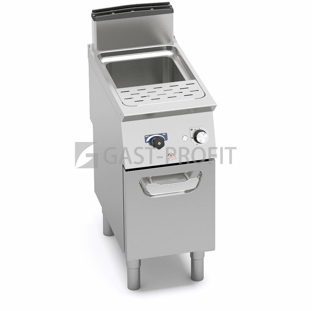 Vysoký výkon zaručený systémem vytápění umístěným vně povrchu pláště nádrže s pojistným termoventilem a chráněným zápalným plaménkem. Piezoelektrické zapalování s gumovou ochranou. Lisovaná vana se zaoblenými hranami vyrobená z nerez oceli AISI 316..