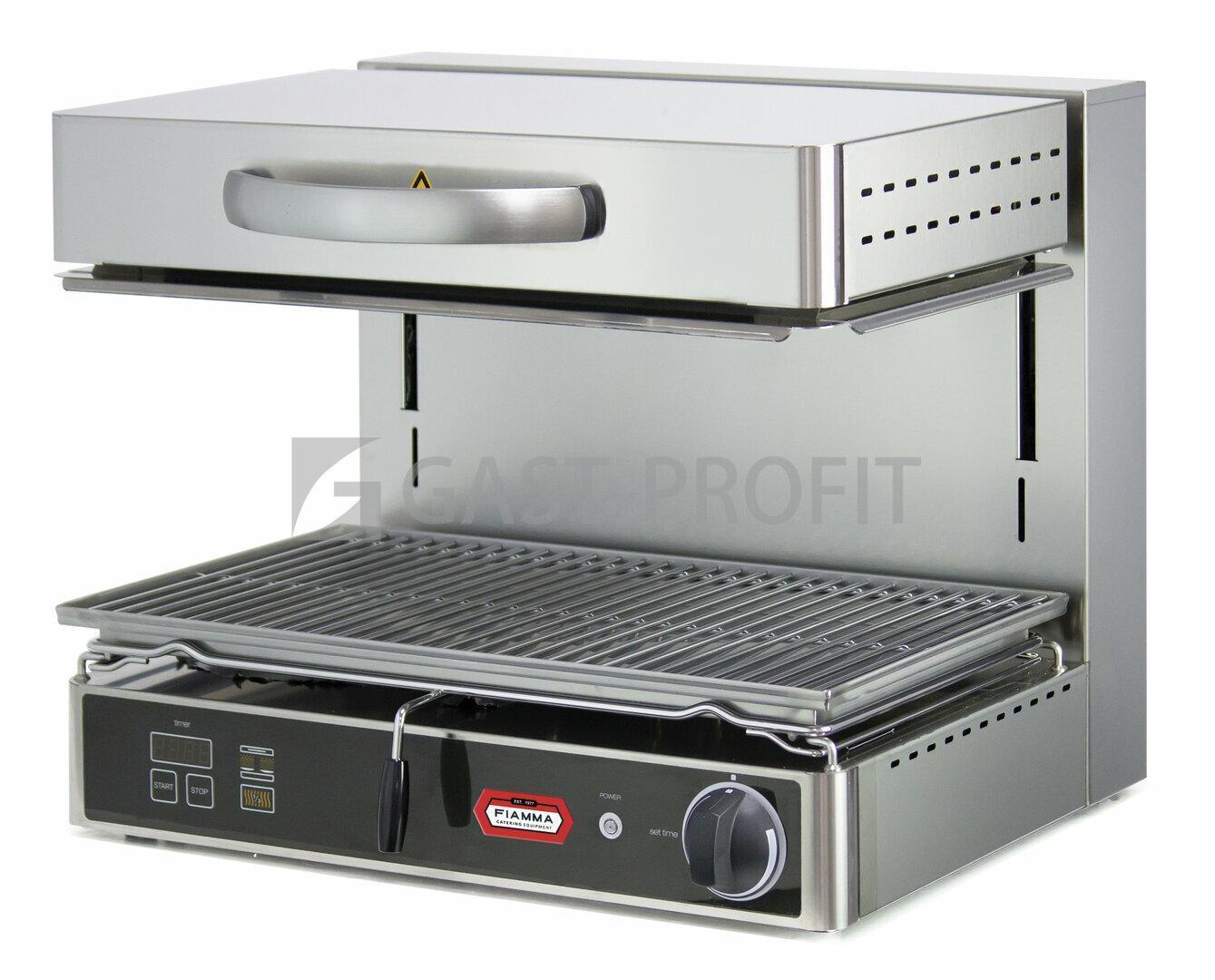 - Snadná obsluha: Rychlý nástup výkonu a plynule posuvné topnice umožňují snadnou a rychlou regulaci teploty. Navíc, salamander je vybaven časovačem, který dozoruje nad procesem přípravy, což vám umožní dosáhnout dokonalých výsledků.