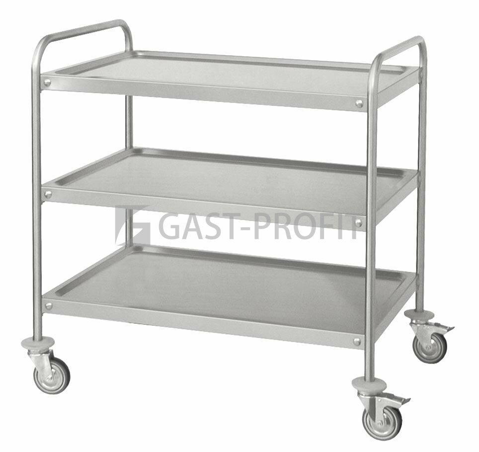 Masivní servírovací vozíky v nerezovém provedení se čtyřmi odolnými otočnými kolečky (2x bržděná). Police mají prolisované zvednuté okraje, pro lepší zabezpečení nádobí při přepravě. Vozíky jsou dodávány v rozebraném stavu, balené v kartonu včetně…