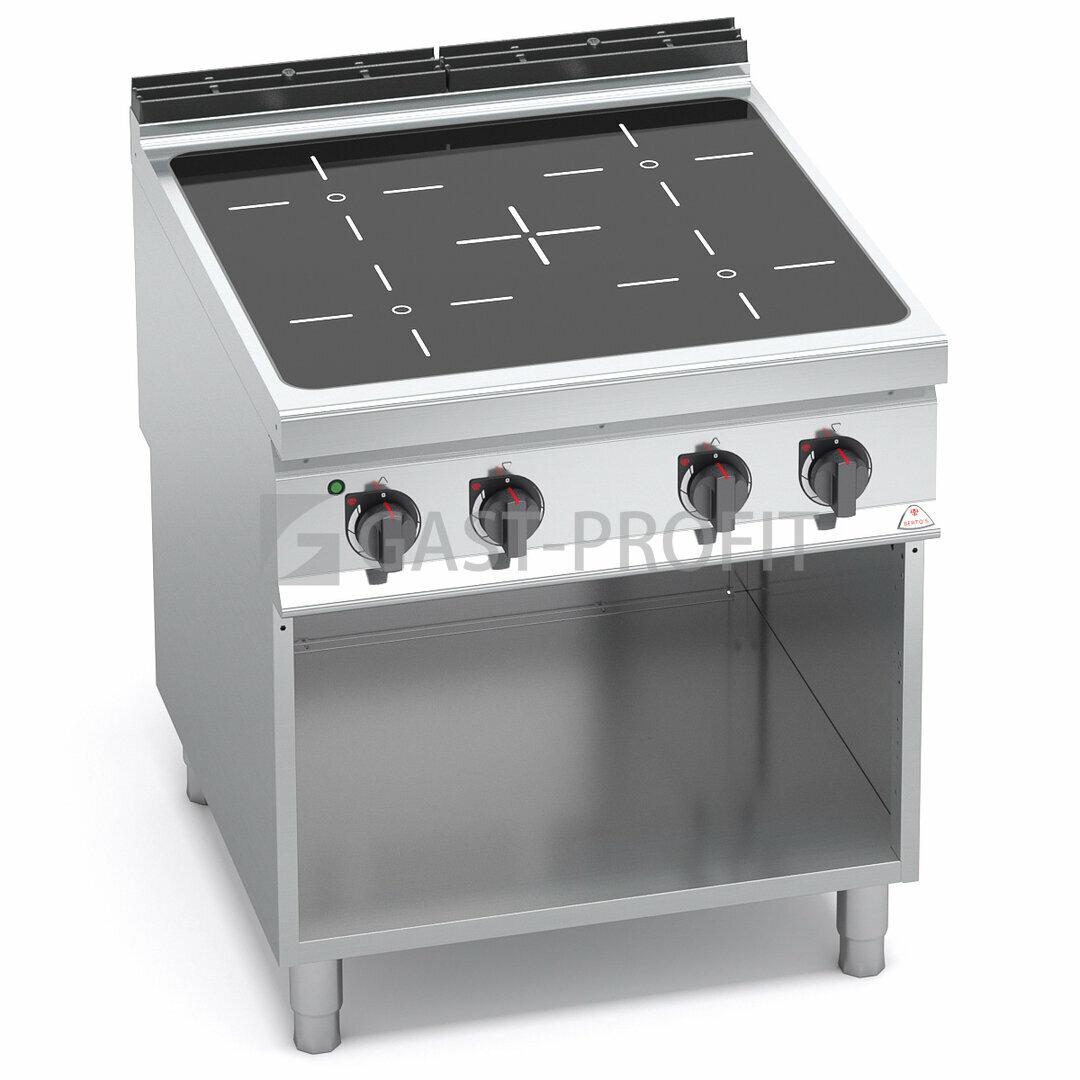Keramická varná deska tloušťka 6 mm. Elektrická topná tělesa o Ø270 mm a výkonu 4kW dosahují při vaření v kruhových zónách vysokých teplot (do 500°C). Plochy zón jsou označeny speciálním serigrafem, dle kterého je určena správná poloha hrnce. Světelná signalizace zbytkového tepla do 60°C při vypnutí každé zóny pro ochranu uživatele. Kompaktní provedení s otevřeným podstavcem.