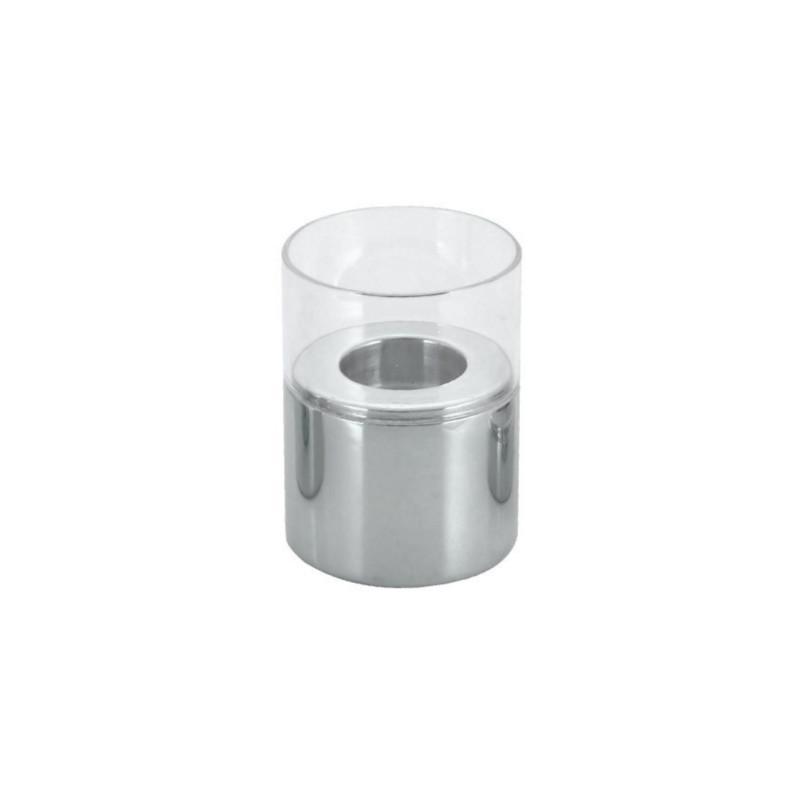 Svícen nerez + sklo 8×13,5 cm