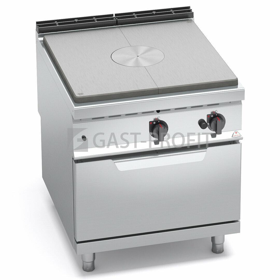 Plynový sporák s ocelovou plotnou velké tloušťky s rozdílnými oblastmi teplot: max. teplota na středu, klesající na okrajích. Ohřev zajišťuje střední litinový hořák s regulací výkonu do 13 kW. Zapalování hořáku a trouby věčným plamínkem. Kompaktní provedení s výkonnou plynovou troubou GN2/1. Vařící plotna je vhodná pro přípravu velmi chutných pokrmů z tradiční kuchyně. Nepřímé zásobování teplem je vhodné zejména při přípravě omáček a pokrmů, které potřebují pomalé vaření při konstantní teplotě. Je velká ze zcela hladkým povrchem, který tak usnadňuje použití široké škály druhu nádobí a zaručuje snadnou čistitelnost. Vnitřní žáru vzdorná izolační vrstva s maximální schopností usměrnění tepla, které je soustřeďováno na střed plotny a nabízí tak vynikající komfort a bezpečnost při vaření.