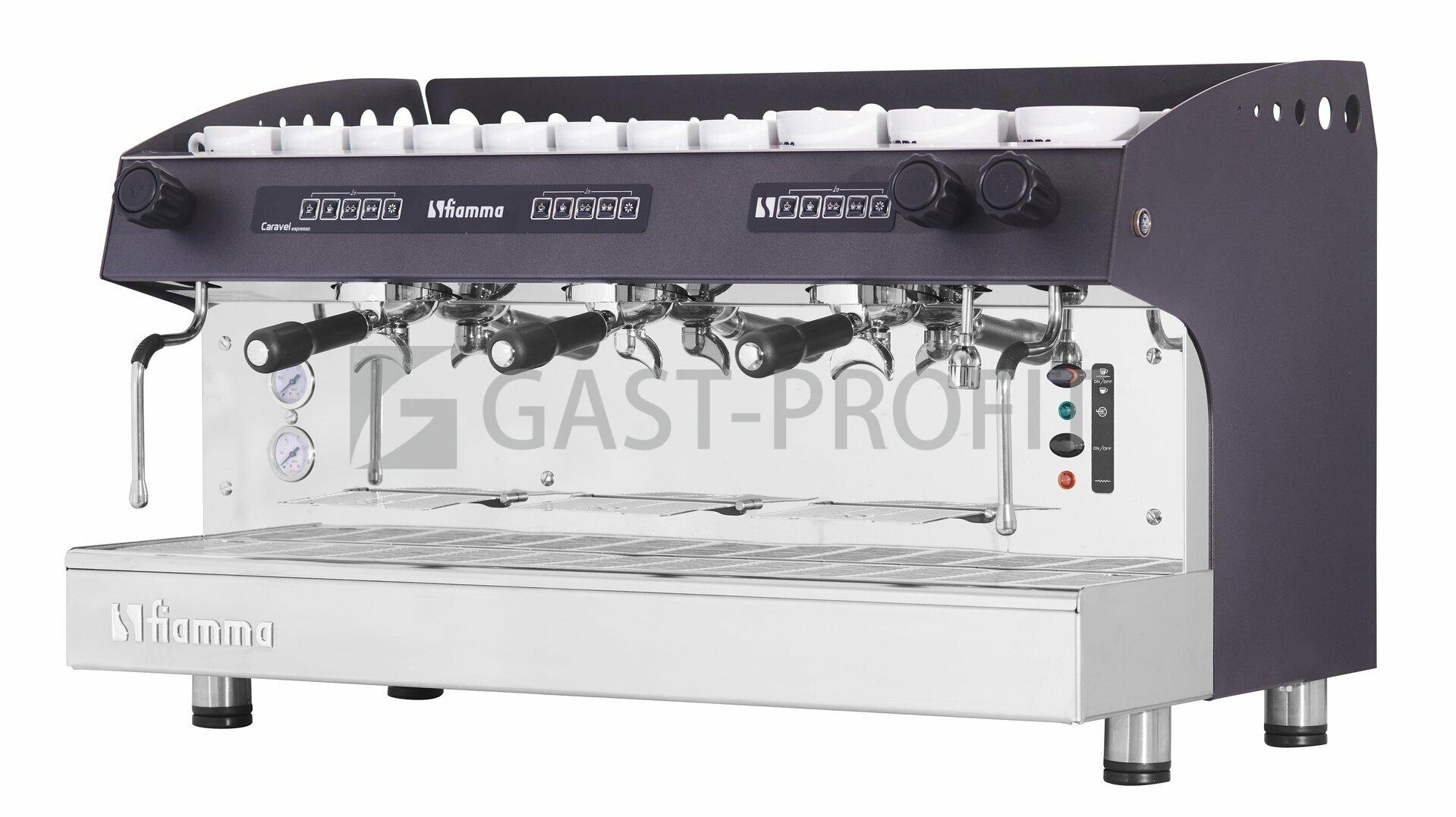 Nový pákový profesionální kávovar Caravel CV TC (Tall Cups) je spolehlivý, výkonný stroj, který připraví vynikající espresso. Je velmi odolný, sestavený z vysoce kvalitních komponentů, odolných materiálů a je v robustním provedení. Je dostupný v široké řadě provedení, vždy v atraktivním a funkčním designu. Vybaven "mechanik systémem", který zaručuje rovnoměrnou a jemnou preinfuzi pro výrobu lahodné kávy. Modely "CV" mají programovatelné ovládání porce kávy pro každou skupinu. Velice snadné přehledné ovládání, osvětlená klávesnice s vysokou odolností. Rozměrný odkládací prostor pro ohřev šálků. Model je vybaven programem pro automatické čistění. Model je v provedení "Tall Cups" s velkým prostorem pod skupinou, která umožňuje použití šálků s výškou až 14cm na kávové speciality a navíc je vybaven sklopným stolkem na malé šálky a standardní espresso. V ceně zařízení je dodáván změkčovač vody LT08 (dvoukohoutový 8 l).