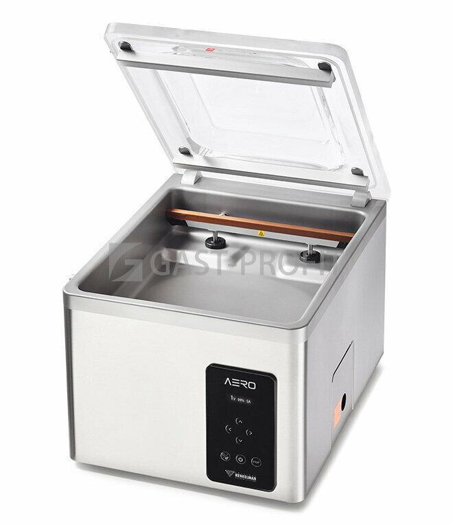 Baličky AERO jsou v robustním celonerezovém provedení s lisovanou vanou, průhledné vypouklé víko komory (vyrobeno ze speciálního odolného akrylového skla) s automatickým otevíráním, fixací zámkem a snadno vyjímatelným odolným těsněním. V komoře je umístěna vyjímatelná svařovací lišta s dvojitým svárem (2x 3,5mm) pro snadnou údržbu a čistění.