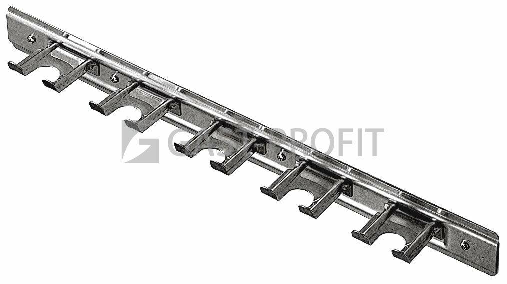 Nástěnný věšák na pizza lopaty, hrabla nebo košťata je vyroben z nerezu a dodáván ve velikostech se 3-mi až 5-ti háčky.