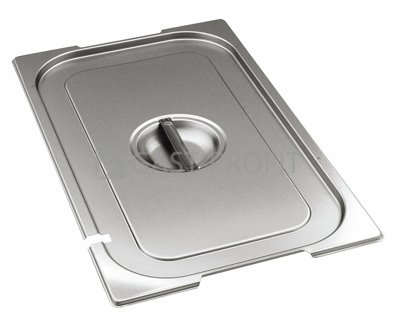 Profesionální víko GN 1/1 s výseky pro naběračku a ucha je vyrobeno z nerez oceli 18/10 v provedení economic a je určeno pro gastronádoby stejné řady.