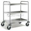 Servírovací a přepravní vozíky B.PRO jsou dodávány v celonerezovém provedení se čtyřmi kovovými otočnými kolečky (dvakrát bržděná). Police mají prolisované zvednuté okraje (pro lepší zabezpečení nádobí při přepravě) rohy jsou zpevněny dvojitým a uzavřeným ohybem ( tím je dosaženo vysokého hygienického standardu a zvýšení tuhosti police a celého vozíku). Vozíky SW jsou dodávány přímo z výroby kvalitně svařené a tím je i zvýšena možnost zatížení vozíku.