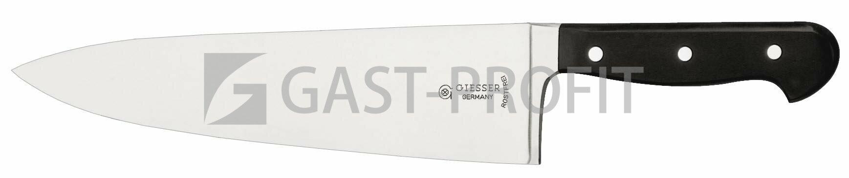 Kuchařský nůž, který snese i tu nejtvrdší každodenní práci s čepelí o síle 6 mm! Kované provedení s nýtovanou plastovou rukojetí.